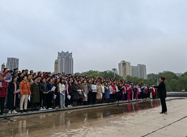 最初,广场合唱群众参与度很低,许多人只是旁观。王东霞不急不躁,耐心动员群众参与,主动与群众沟通,让大家找到归属感。渐渐地,合唱团的队伍迅速壮大,群众参与度日渐增高,从2024年10月至今,已成功举办近40场大型合唱活动,参与人数达2万多人次。陕北民歌《赶牲灵》《三十里铺》,红色歌曲《军民大生产》《南泥湾》《打靶归来》,新创歌曲《这哒哒来》《冰雪逐梦》等,唱响了世纪广场和阳光广场的上空,也唱进了群众的心里。