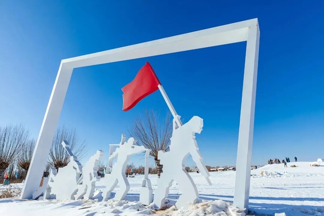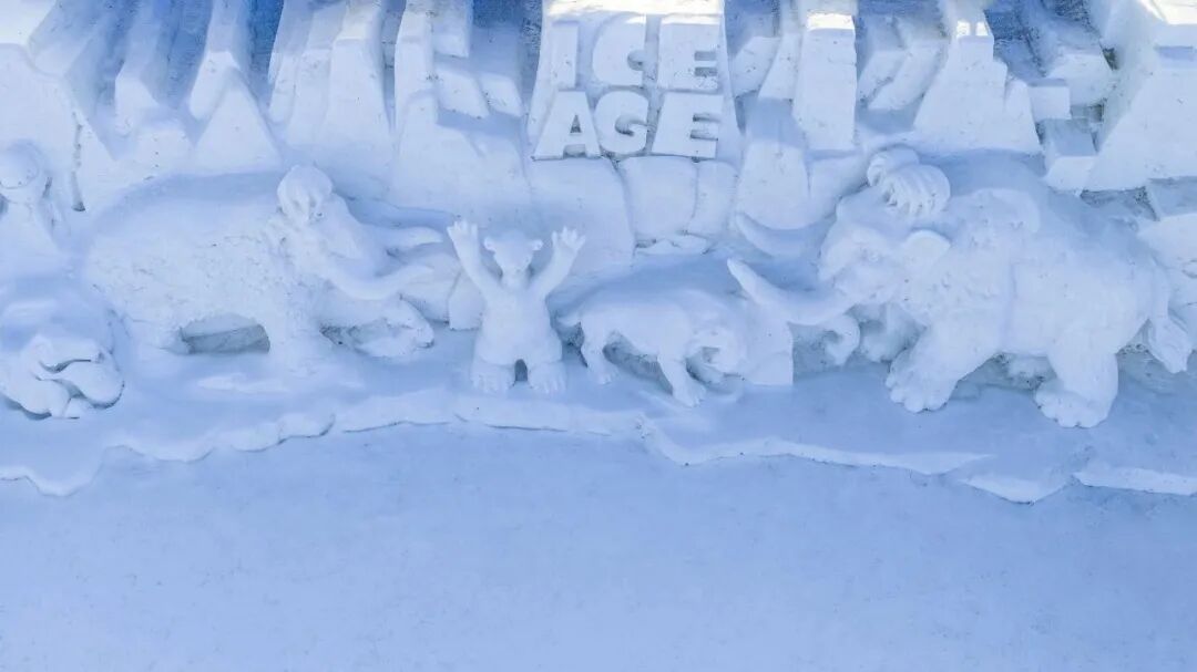 雪雕区里,丝路驼队的剪影在阳光下泛着温润的光泽;器宇轩昂的腰鼓手、说书的艺人、热闹的年俗场景,被冰雪凝固定格,厚重的人文在剔透中变得可亲可触。