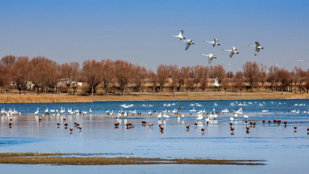 候鸟迁徙季节,上万只天鹅如约而至,蔚为壮观。国家I级保护野生动物白尾海雕、金雕、草原雕,展现着顶级掠食者的威严;国家II级保护动物大天鹅、小天鹅、白琵鹭、鹗等,或在水中悠然游弋,或于滩涂静静伫立。省级重点保护的绿头鸭、短嘴豆雁和斑头雁等,共同织就了一幅生动斑斓的鸟类画卷。