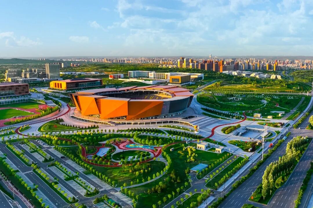 榆林体育中心体育馆将“天圆”的哲学发挥到了极致。从空中俯瞰,它如同一枚巨大的飞盘,其流畅的弧线破除了城市天际线的刚直。走进内部,圆形设计的精髓更为凸显,环绕式的看台布局确保了无论身处哪个座位,观众的视线都能毫无遮挡地聚焦于中央的赛场,场内的呐喊、激情与汗水,都在这个圆形的空间里回荡、升腾。