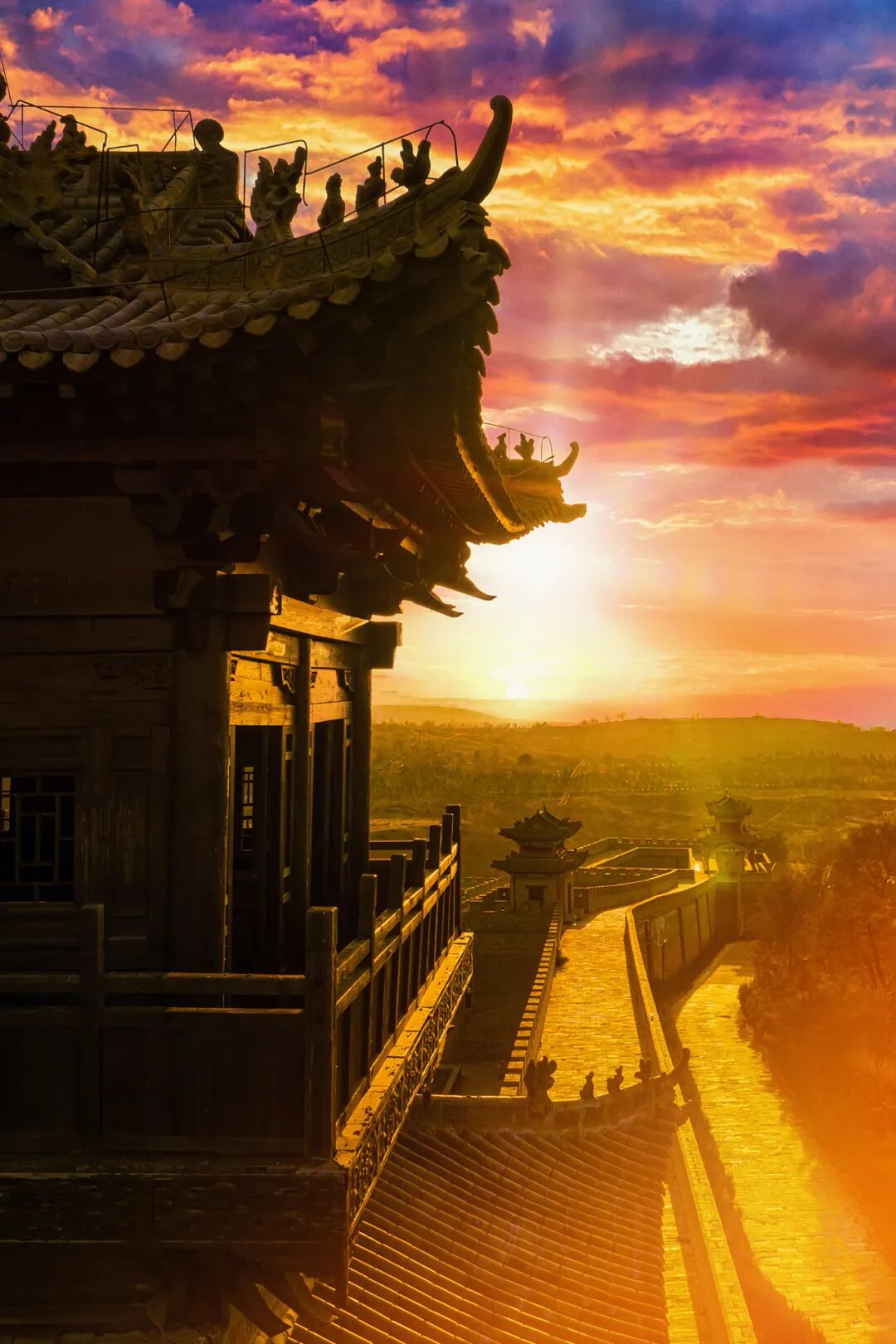波罗古堡其城楼与庙宇的飞檐,坡度舒缓,檐角轻扬,几个三角形斜面相互搭接,稳重中透着轻盈,在黄土高原的苍茫背景下,显露出一种肃穆而坚韧的线条。