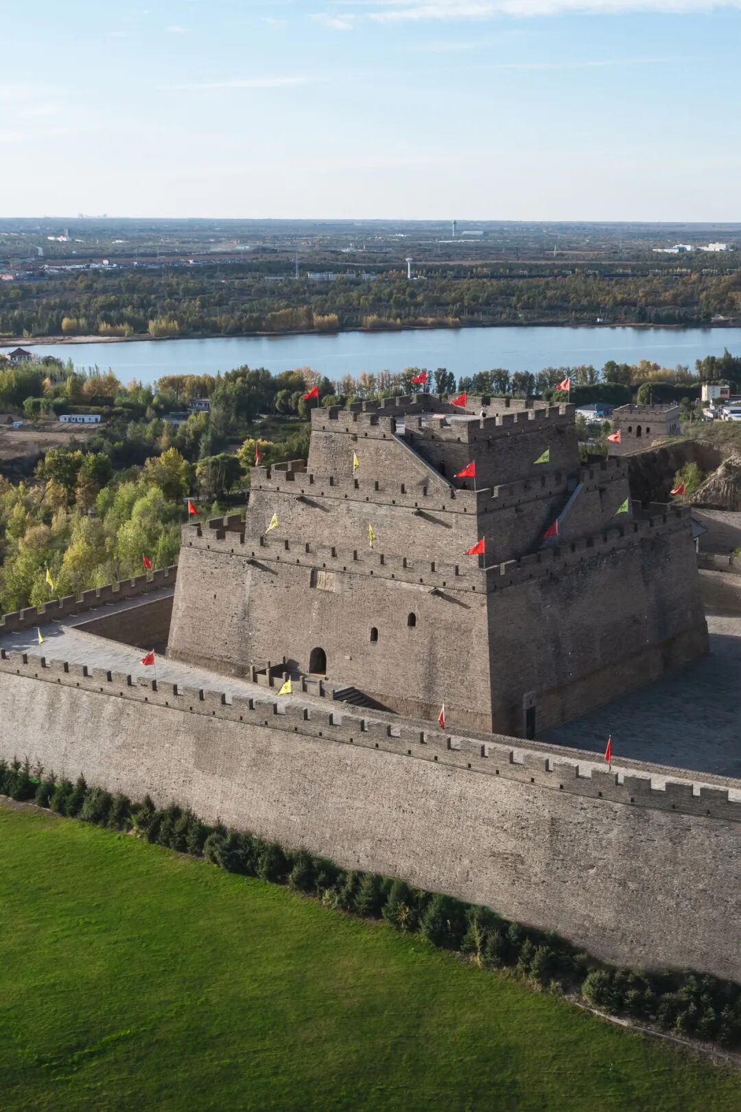 镇北台并非简单的立方,而是一座逐层内收的方正梯形,向上层层递减,形成极其稳定而威严的轮廓,每一块青砖由黄土夯筑、外裹砖石的实心台体,将“端方”二字诠释为一种无法撼动的存在感。