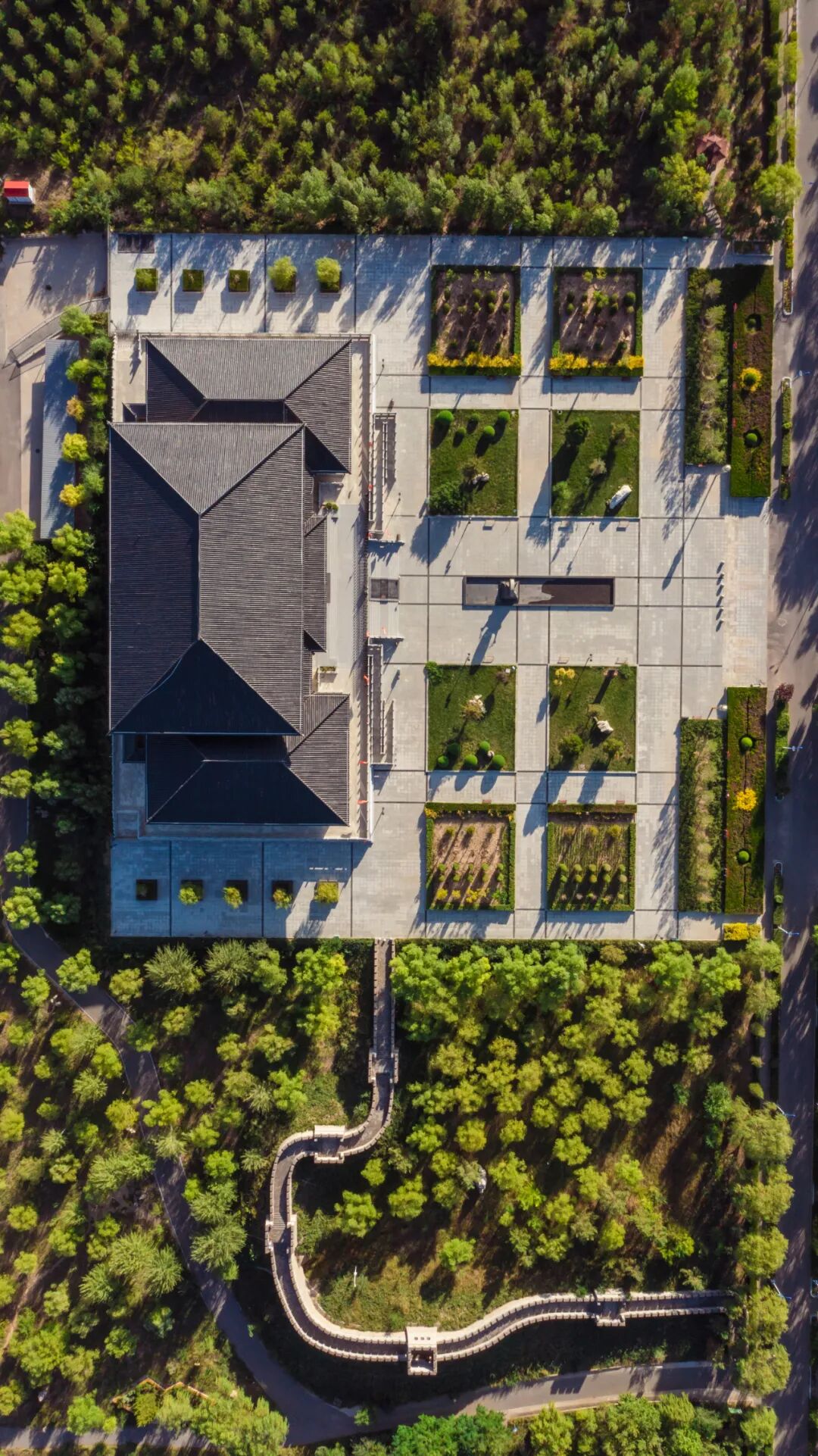 五台森林公园的灵魂,在于一种方正的格局与阵列的绿意。笔直的道路将广阔的绿地区划为一个个功能明确的方形区域,犹如在大地上铺设一张绿色的棋盘,让山丘、林木、湖泊与步道,在严谨的框架中自由呼吸、有序生长。
