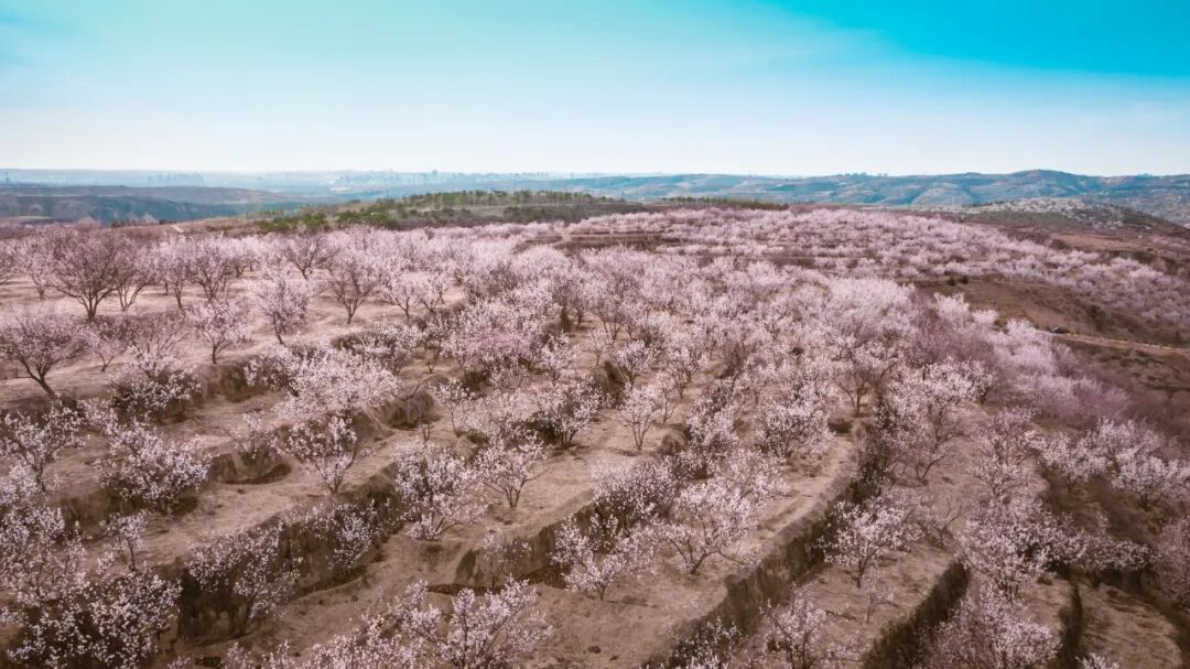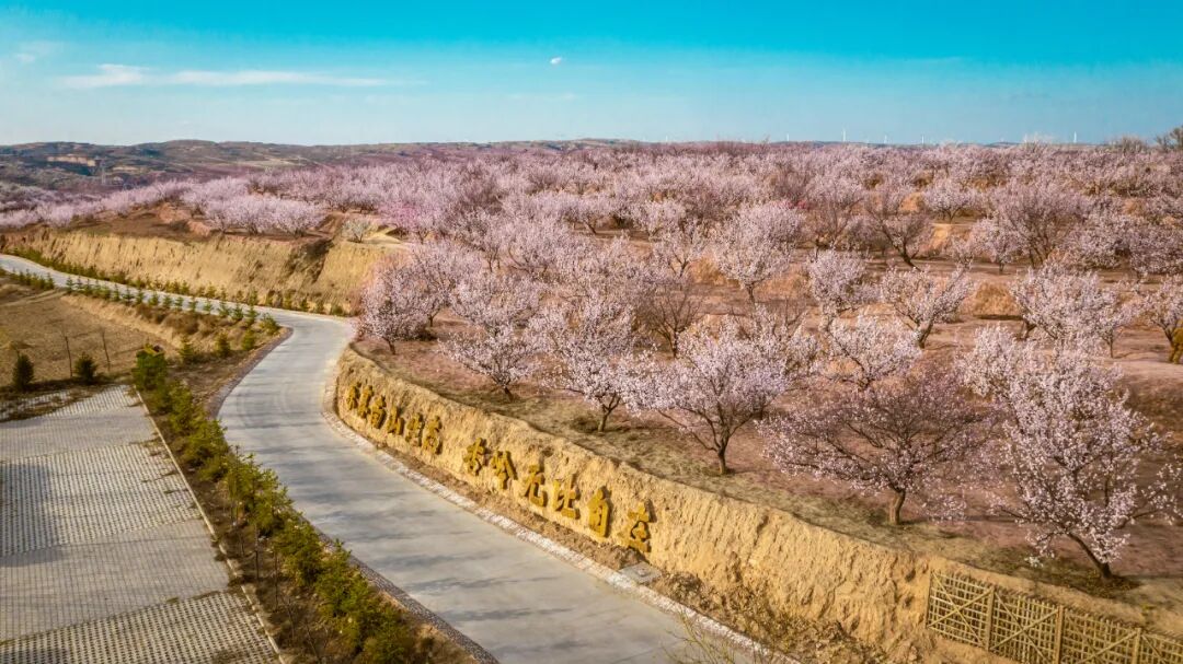 田园阡陌与杏花交织相映