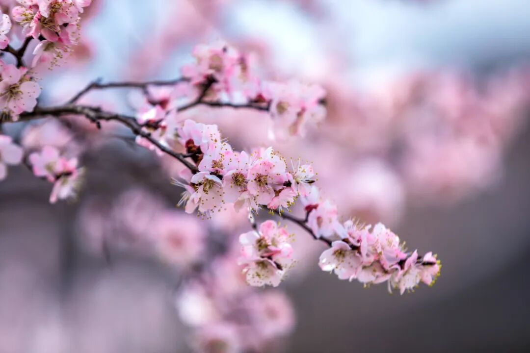 粉白如雨,微风轻暖,春意馥郁